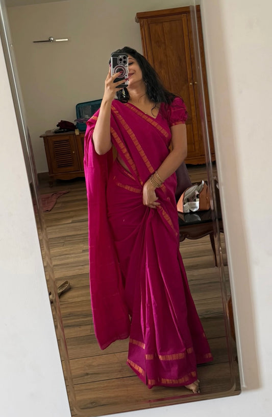 Tarangini Majenta handloom sungudi plain sarees, Sithara’s choice