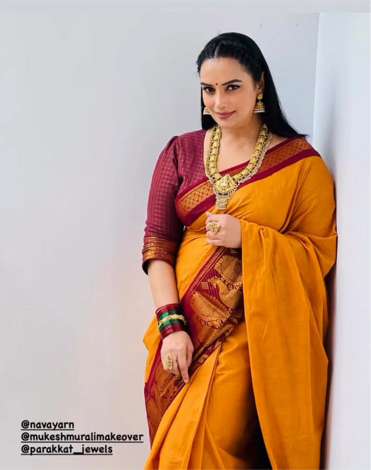 Sangita korvai Vintage Cotton Saree with contrast temple border