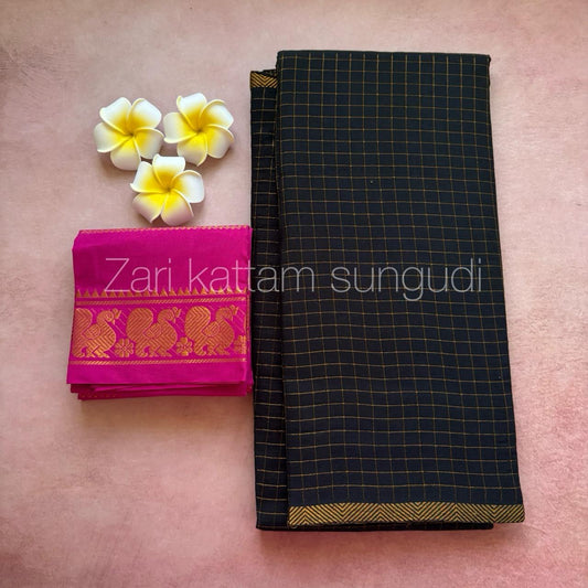 Black and pink combo micro checks pentex border Sungudi cotton Saree