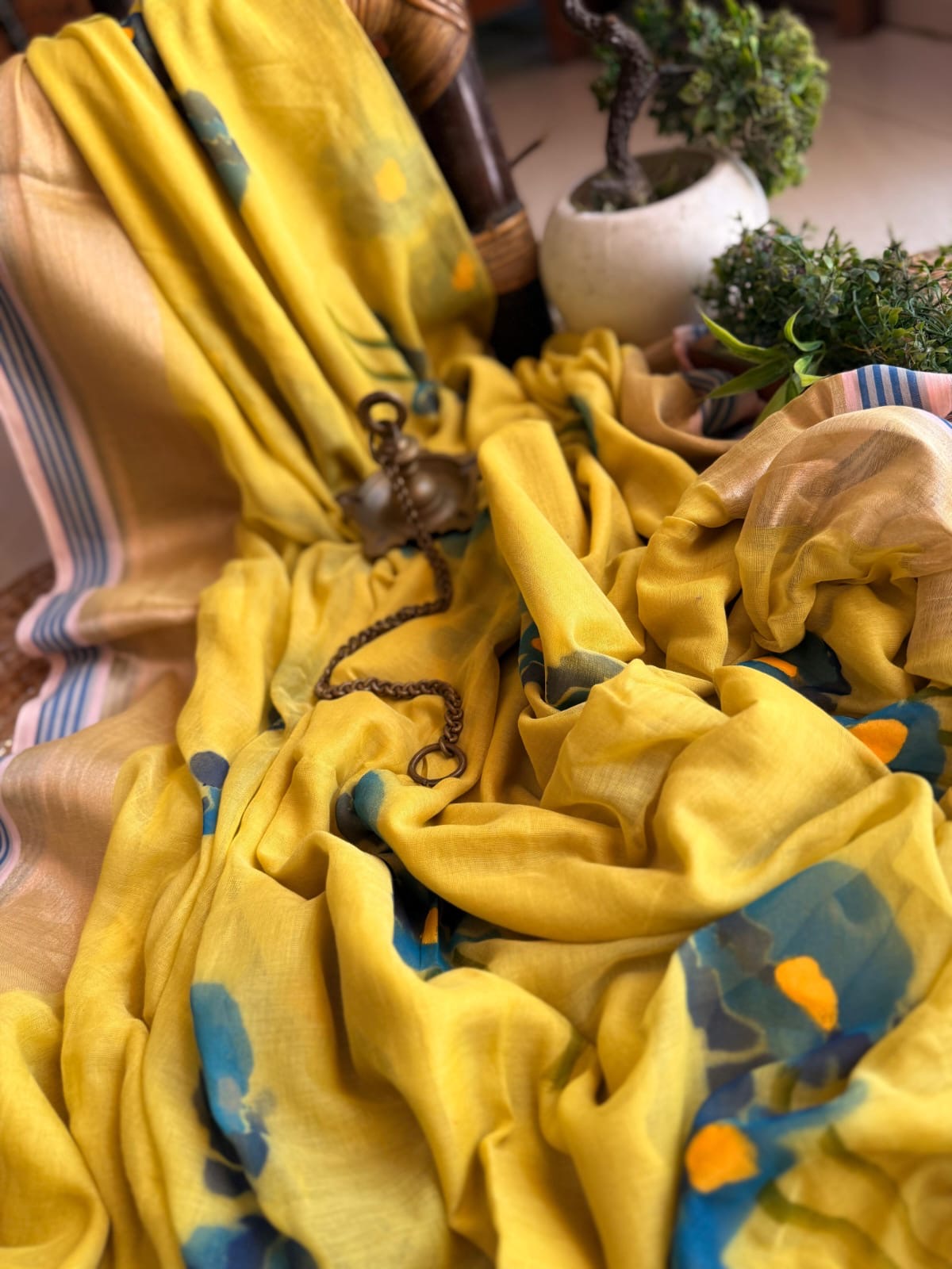 Elevate your style with this stunning handloom hand-painted mal cotton saree, perfect for any occasion. The soft and comfortable fabric drapes elegantly, making it a must-have for your wardrobe.