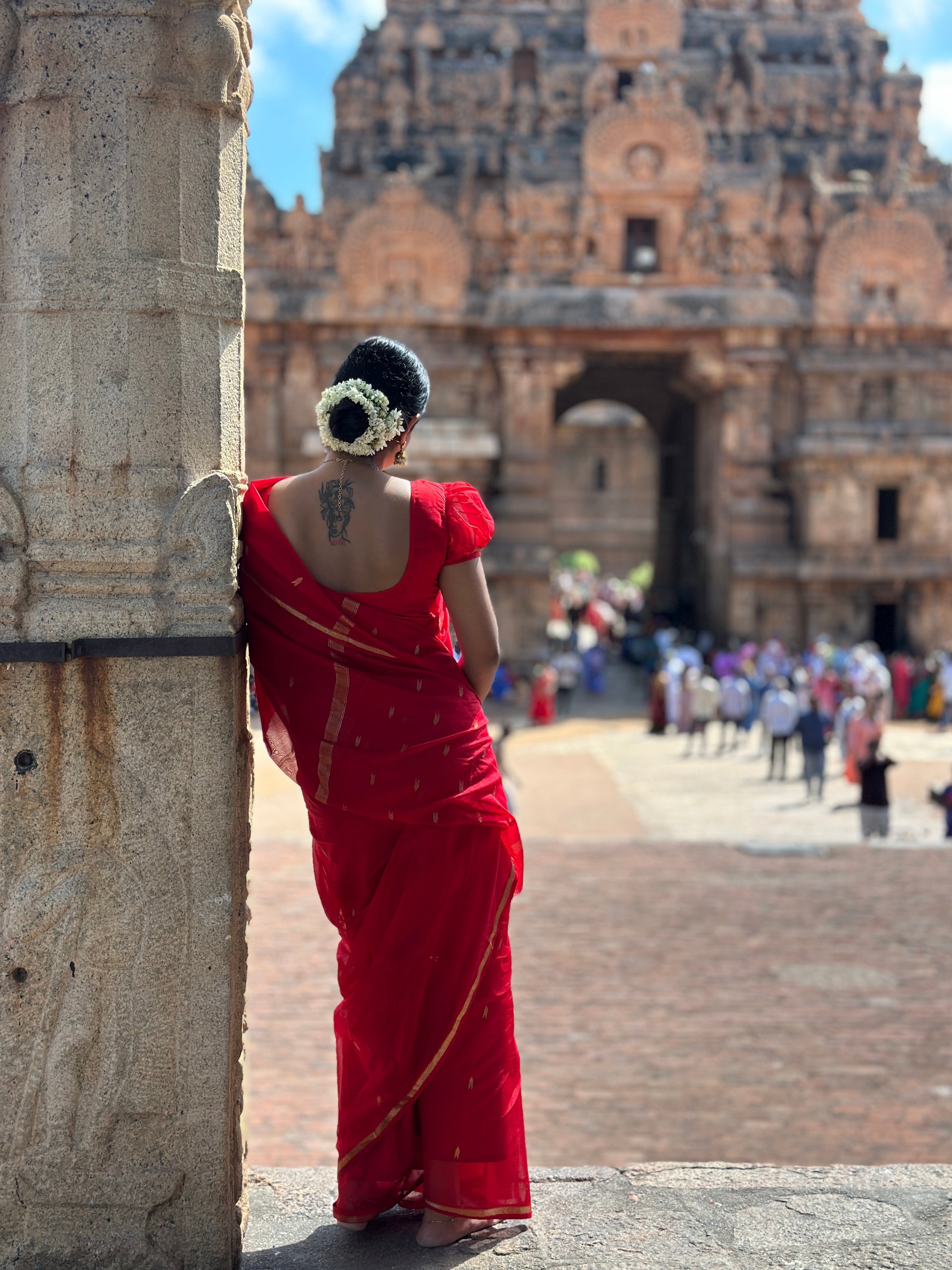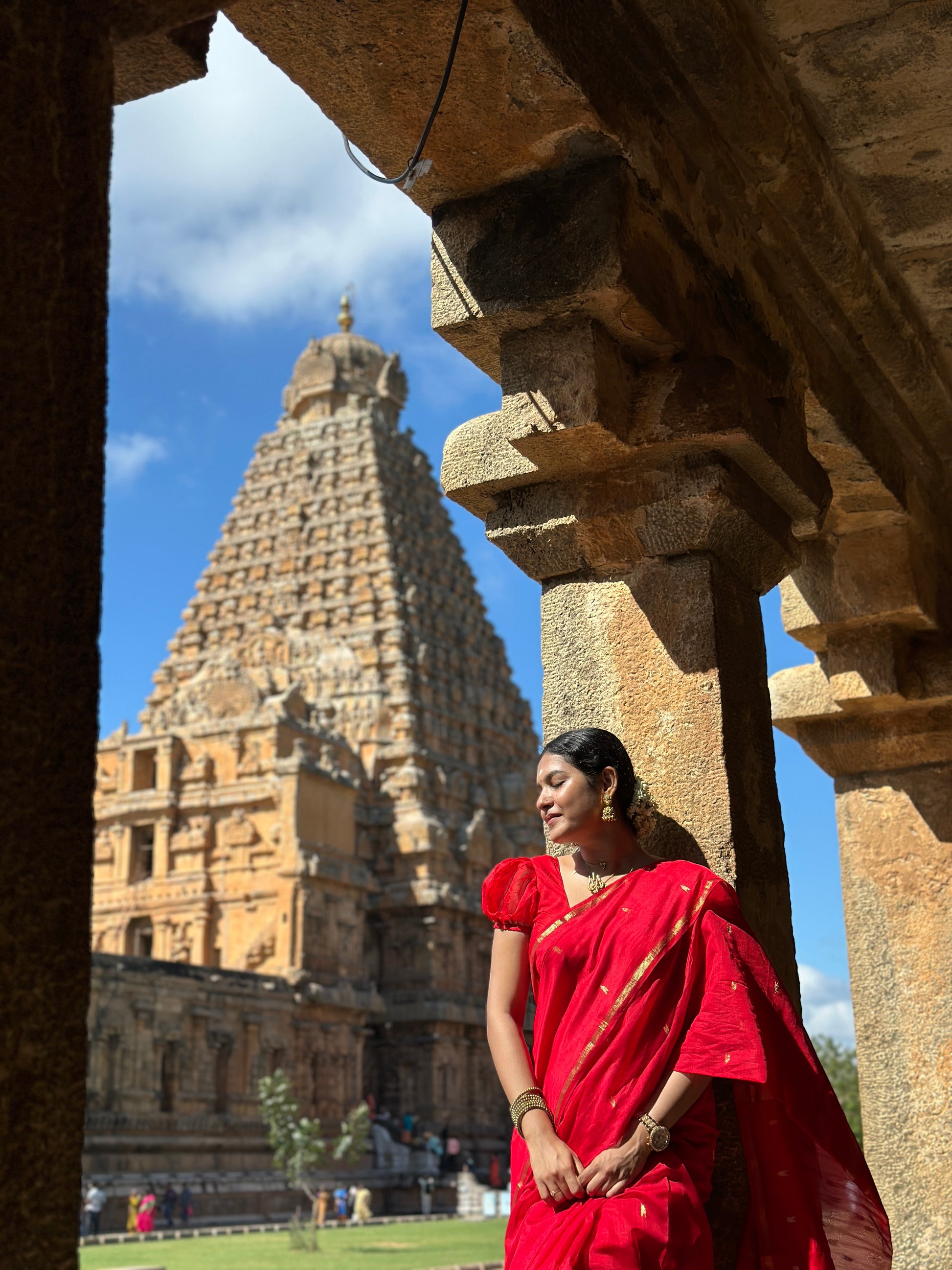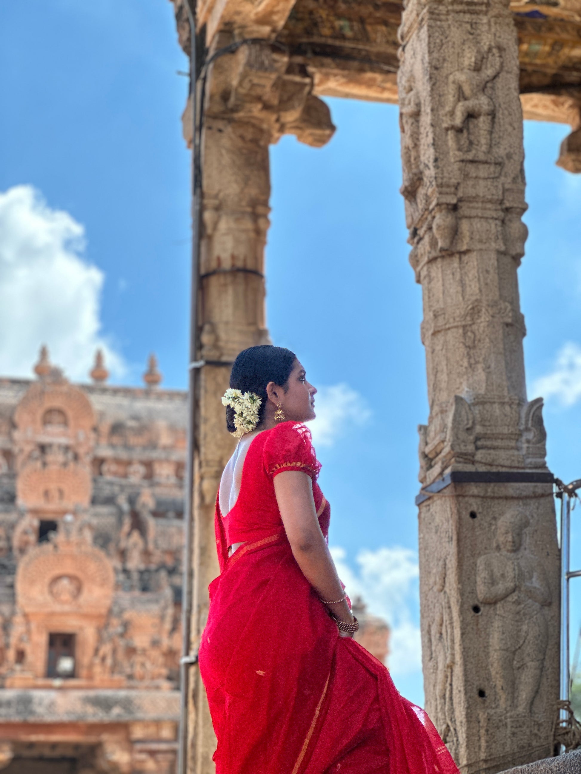 Kalyanika (कल्याणिका) Handloom Maheshwari Silk Cotton Saree, Festive Red (Sithara’s choice)