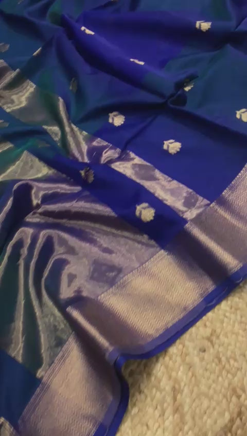 Kalyanika Maheshwari silk cotton Saree with flower buttas Royal blue