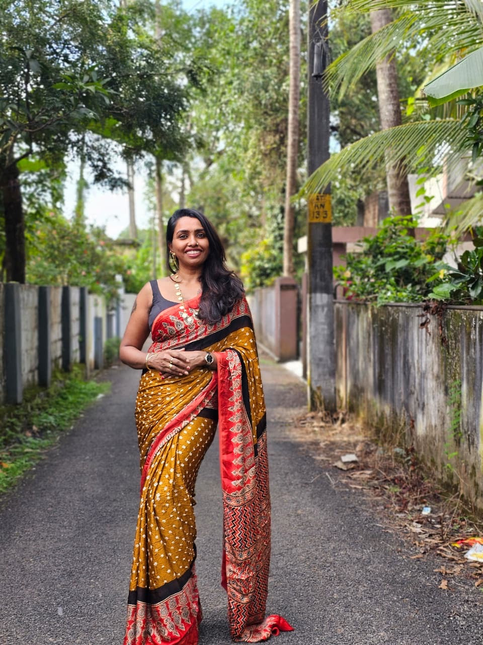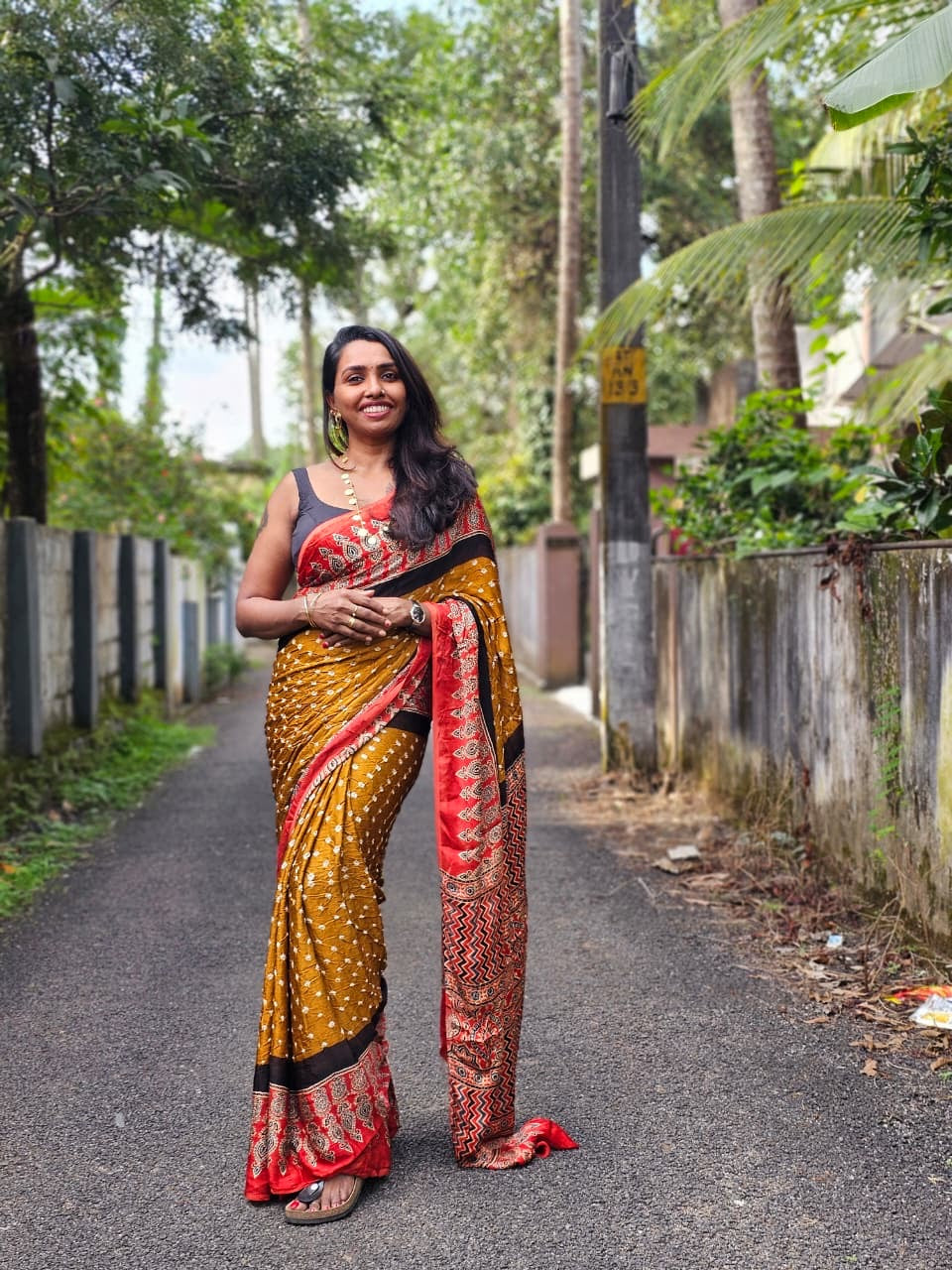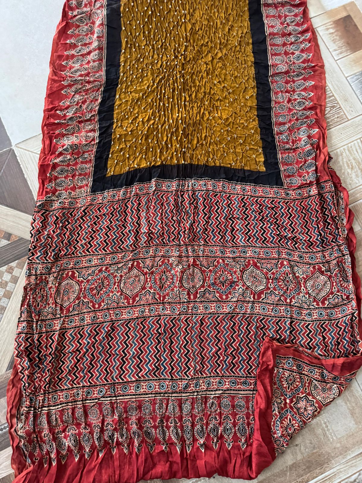 Authentic Hand Bhandej Ajrakh Modal Silk Sarees