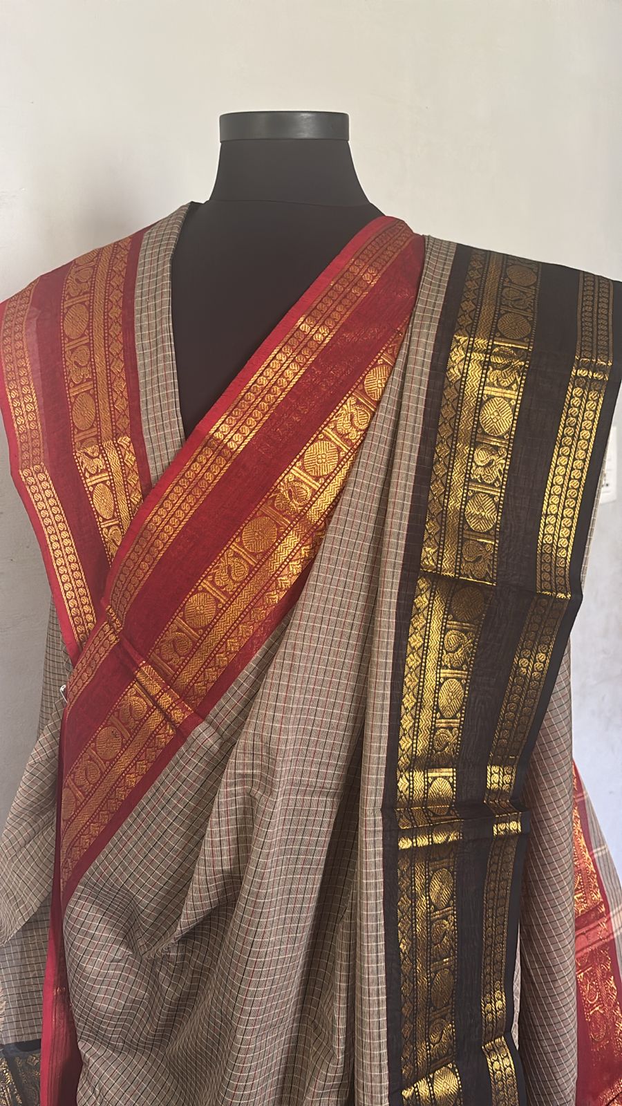 Sangita kanchi cotton checks Saree with ganga jamuna border
