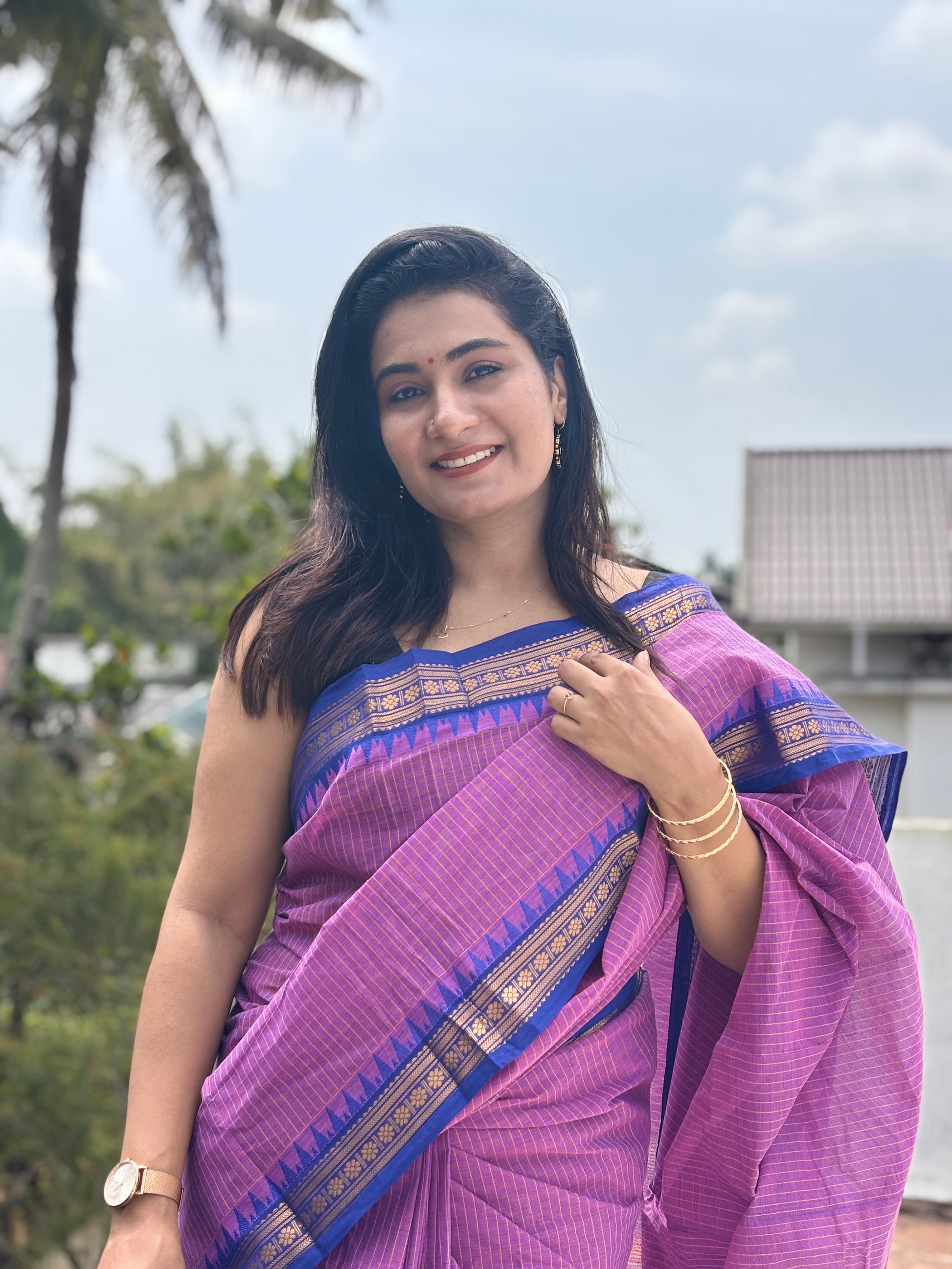 Experience the timeless elegance of Tamil Nadu's traditional Chettinad heritage with our exquisite Korvai pure cotton sarees. These stunning sarees feature: