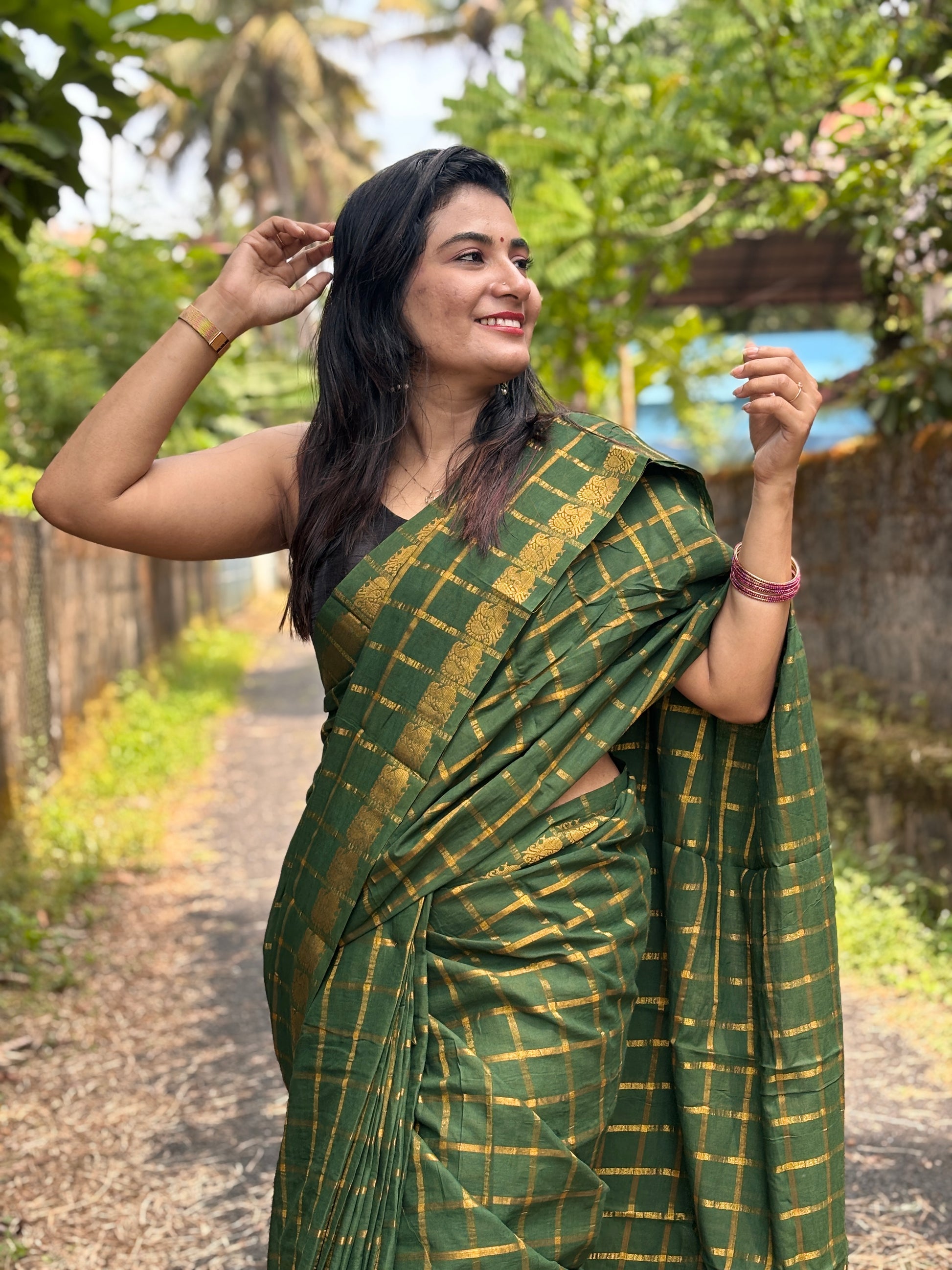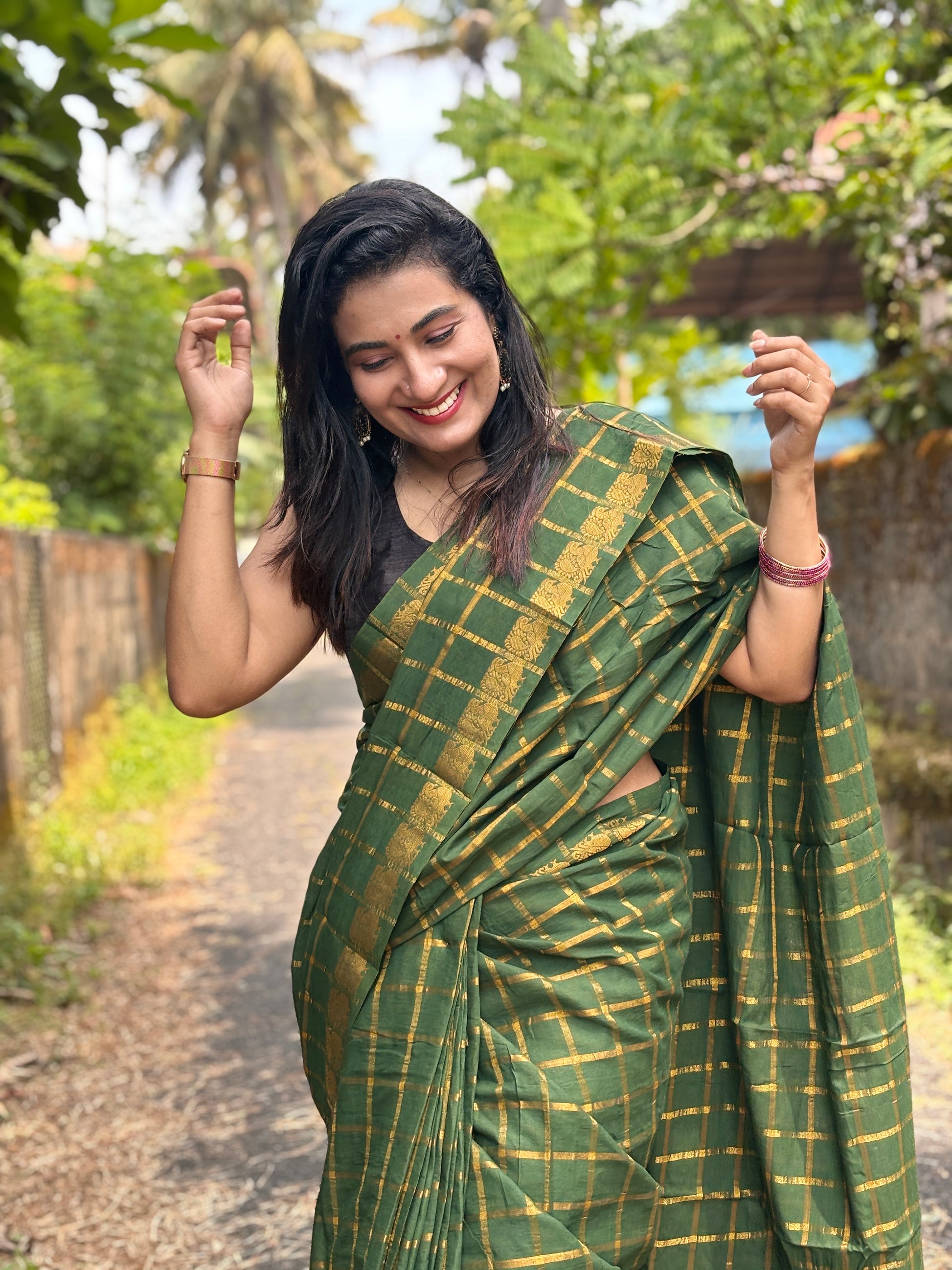Tarangini Green Sungudi Zari kattam Saree with blouse