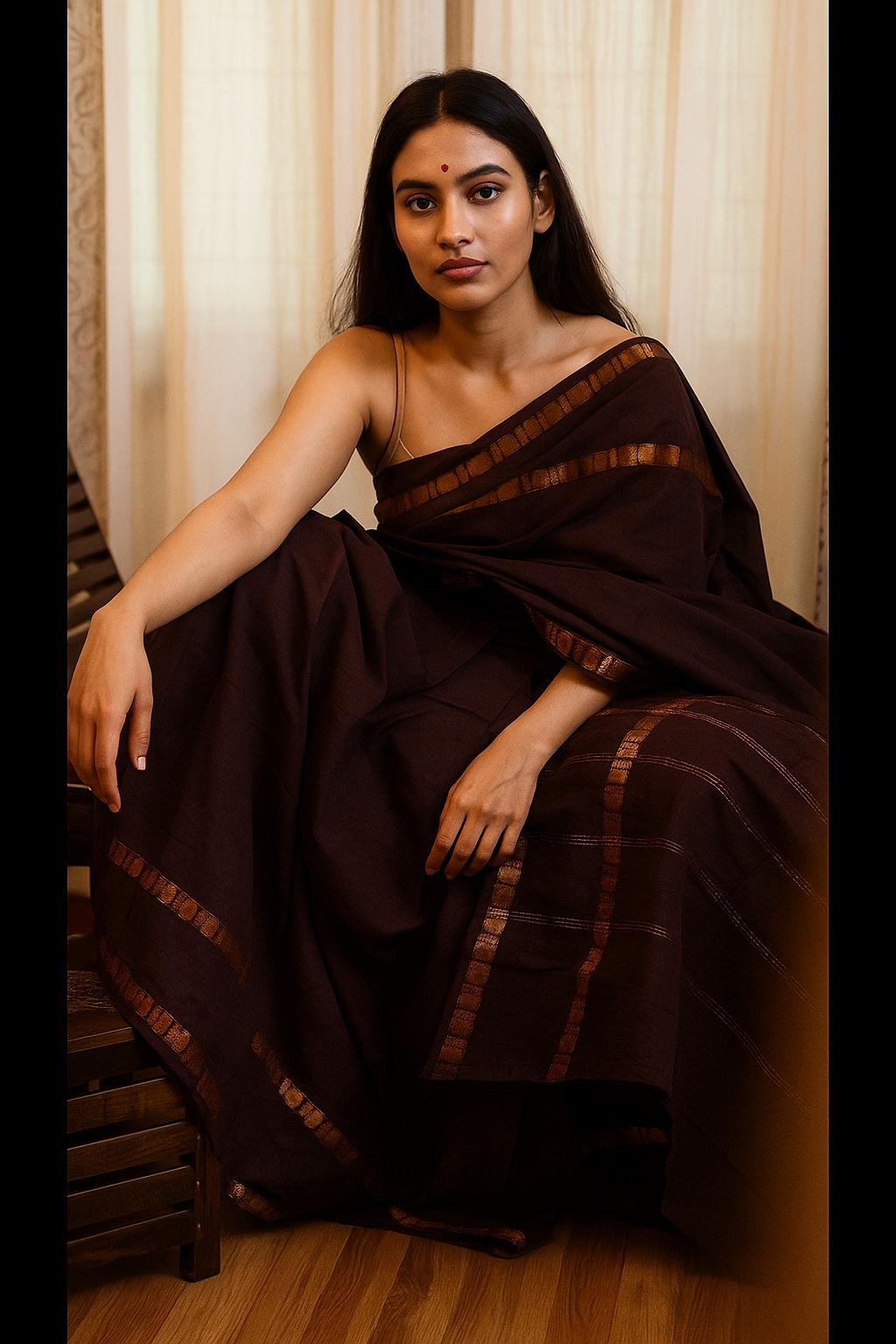 Tarangini Handloom Sungudi Cotton Sarees Brown