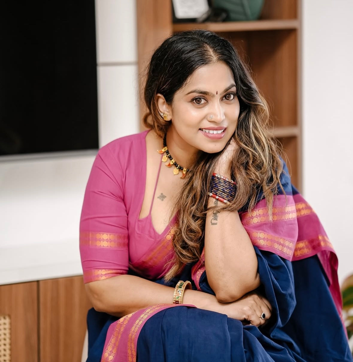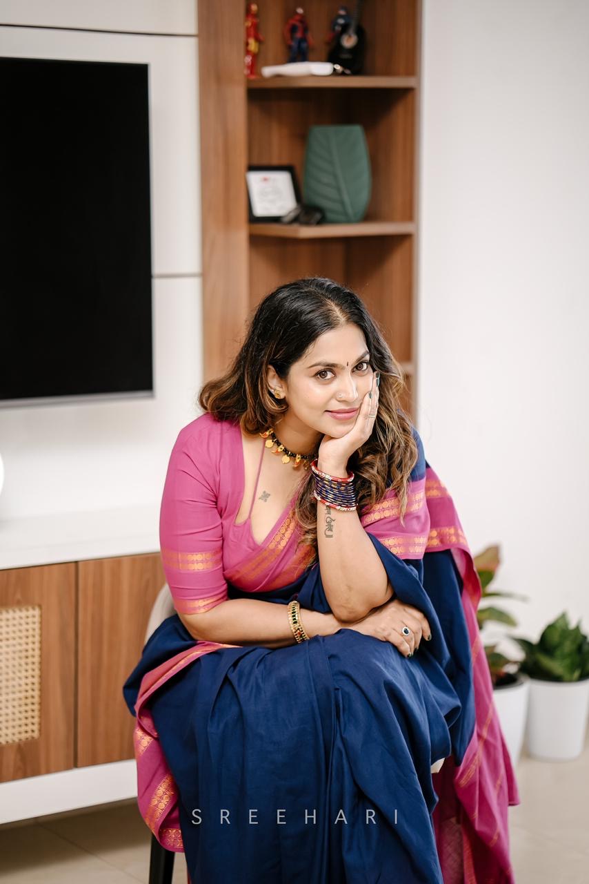 Tarangini vintage Navy blue and majenta Rudraksha border sungudi saree Rajila’s choice