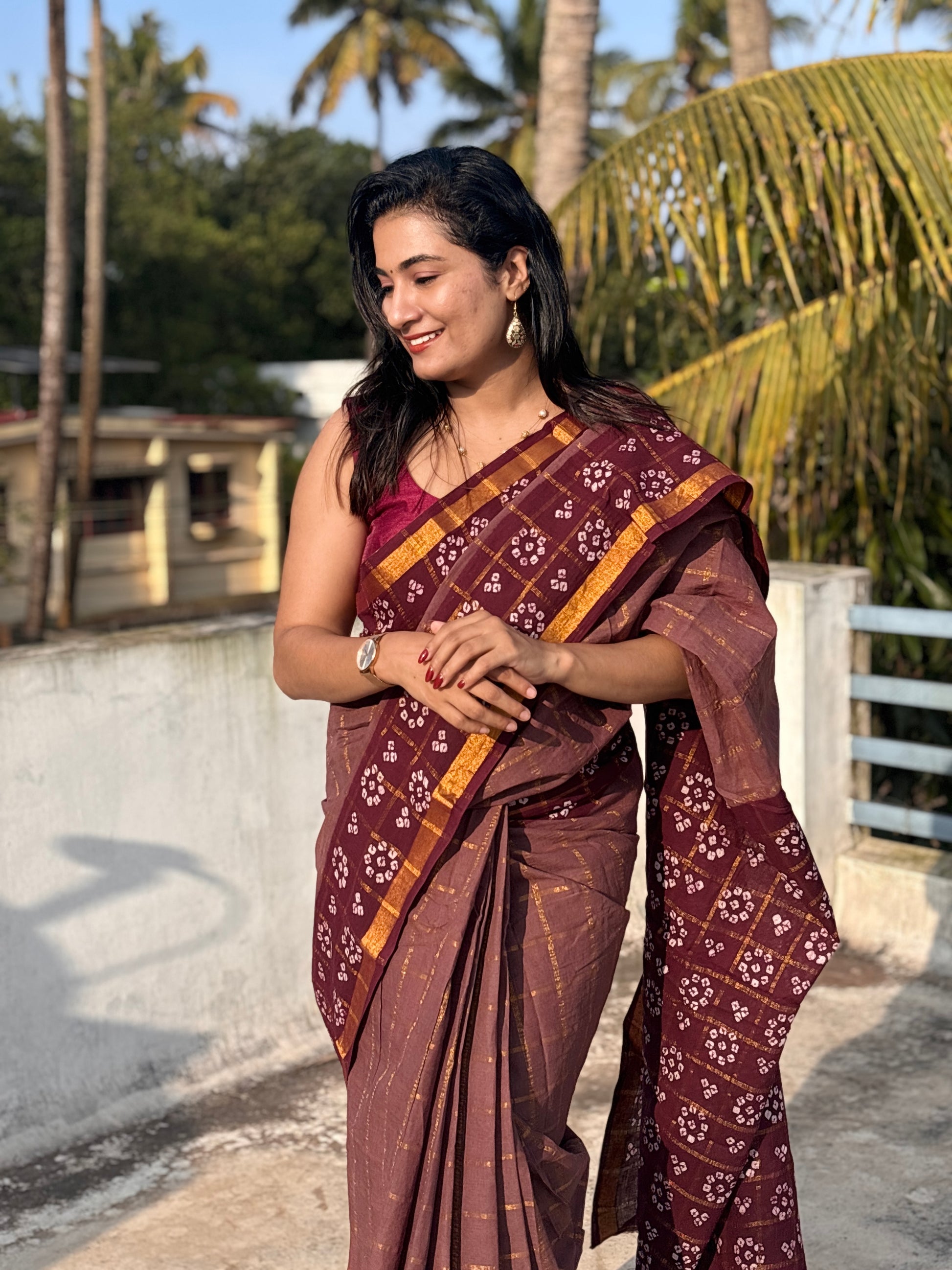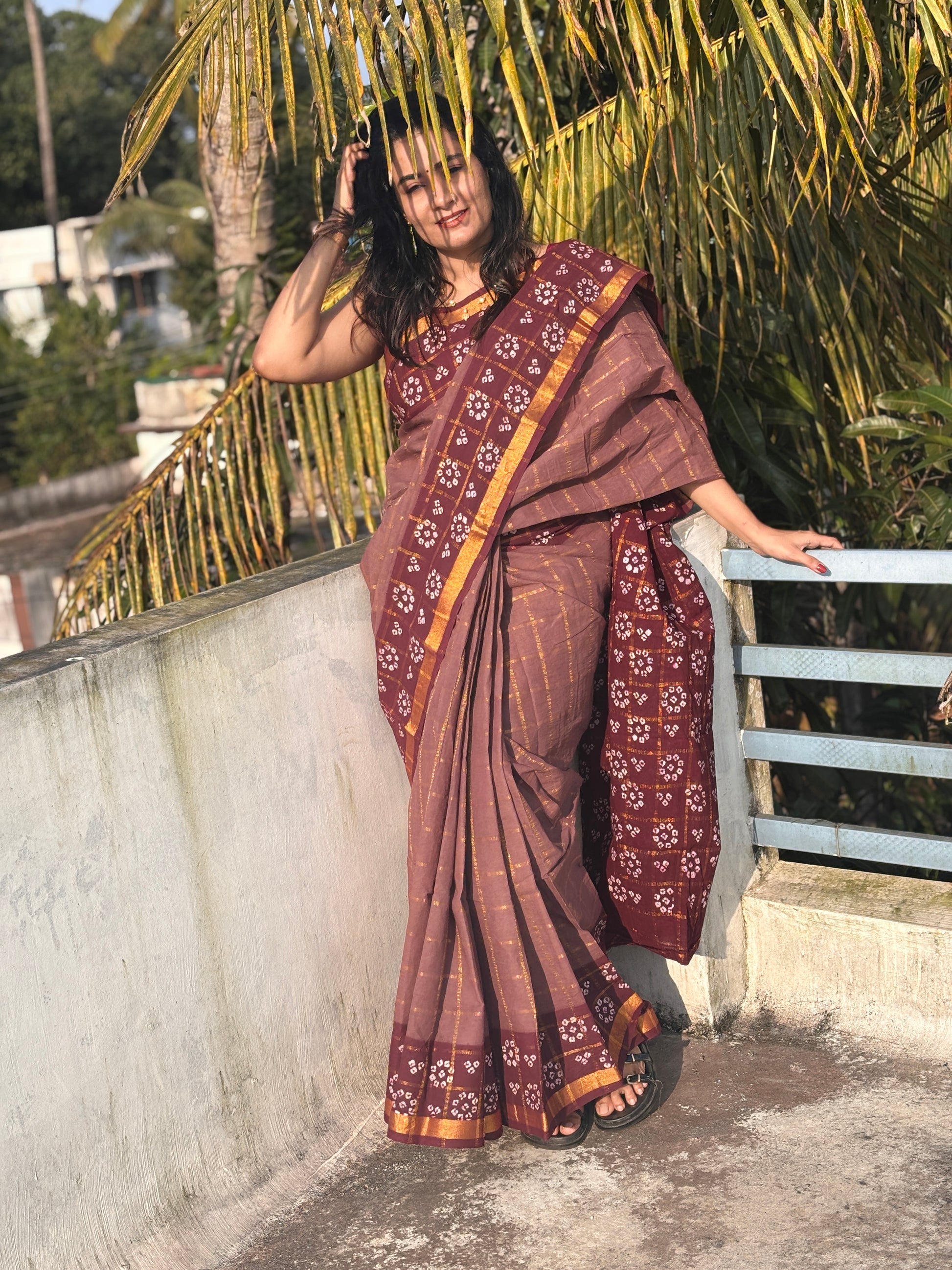 Tarangini wax batik zari kattam Sungudi Cotton saree with blouse piece