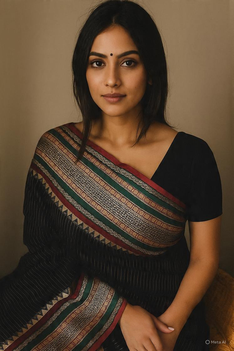 Vrinda वृंदा Narayanpeth Black Striped temple border Vintage Sarees